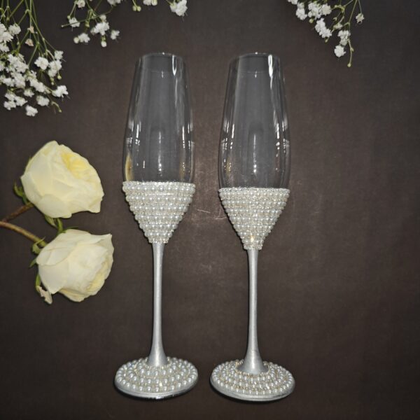These flutes are more than just glassware; they are a reflection of the artistry and attention to detail that goes into creating unforgettable moments. With their shimmering allure and graceful design, the “La Perla Flutes” adds a touch of sophistication and luxury to your celebratory toasts, making each sip a refined and unforgettable experience. Raise these flutes to create an atmosphere of sheer refinement, enhancing the ambiance of your special occasions with an aura of lavish splendor.
